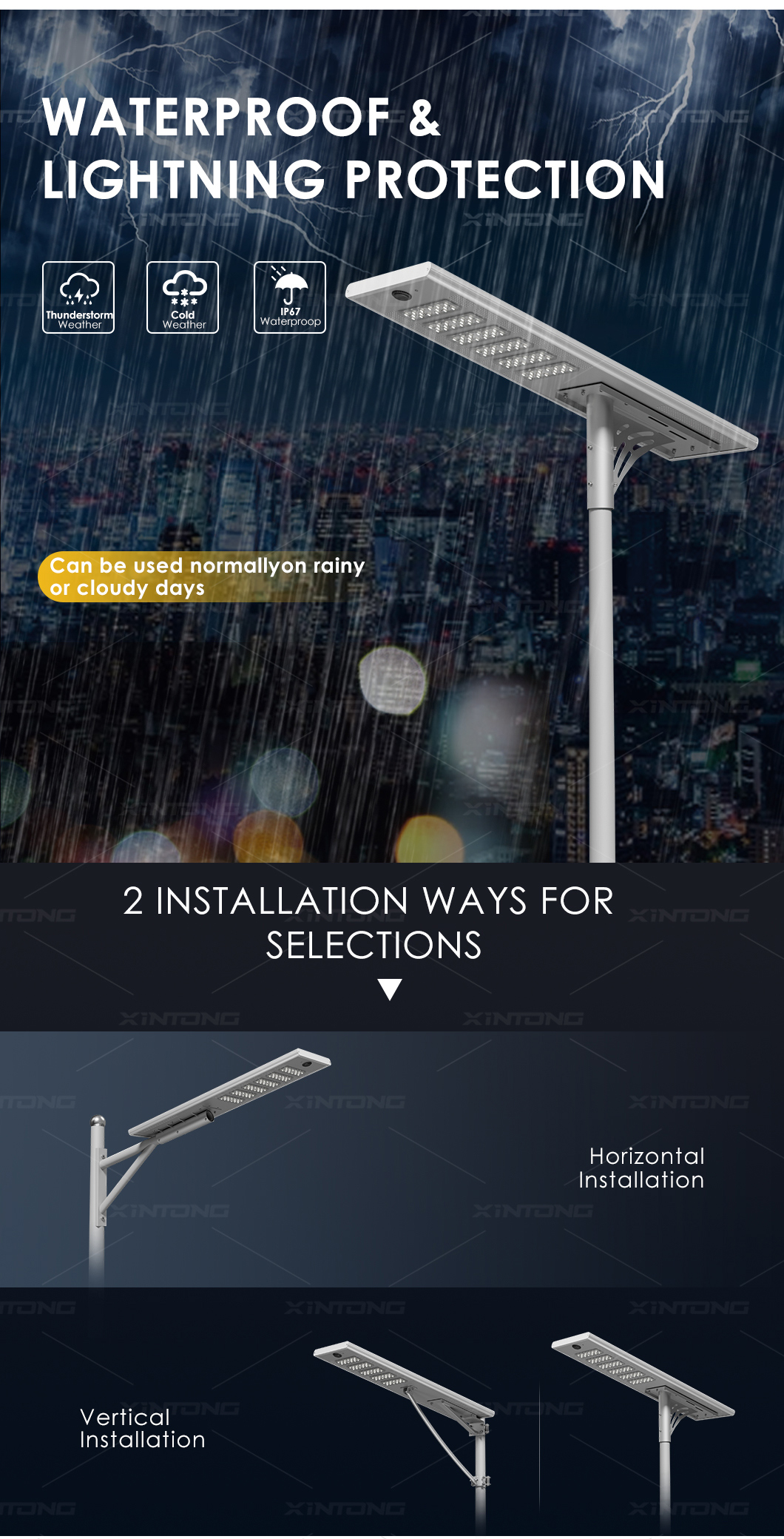 ✧ Adopt energy-saving intelligent control, which automatically closes the street lamp in the dead of night to extend the lighting time.